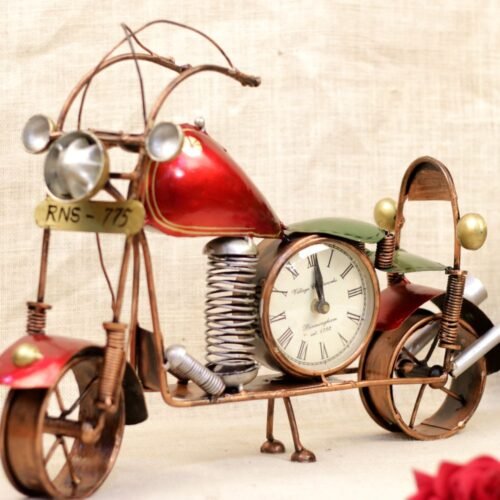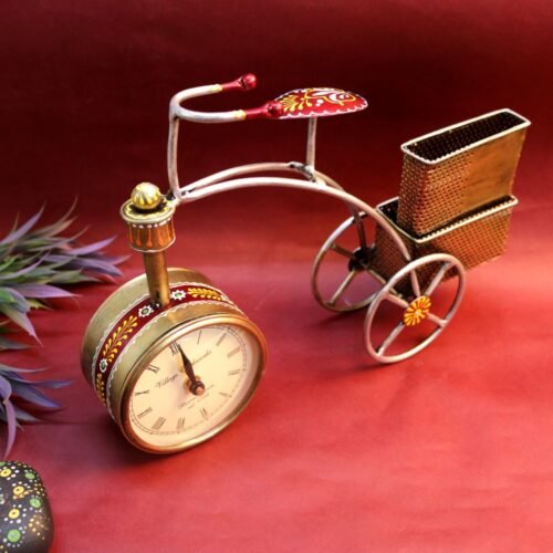 IRON PAINTED CYCLE PEN STAND WITH CLOCK