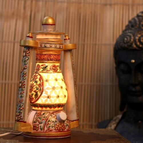 MARBLE LANTERN JALI 9 INCH