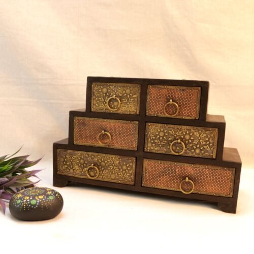 Wooden Peacock 3 Drawer Storage Box – Decorative Organizer